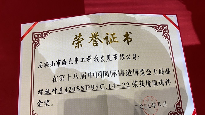 2020年8月17-19,海天在上海開展的鑄造展會取得了優異的成績——螺旋葉片獲得了鑄件金獎。此外,很多參展客戶與廠商也紛紛與海天進行交流溝通,獲得了眾多好評。